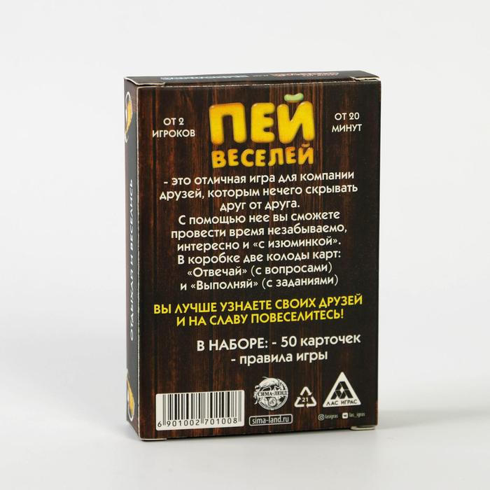 Купить игра для компании "пей веселей" 50 карт от 180 руб. с доставкой до пункта выдачи в Котельниках. Интернет магазин ДекаМаркет. Оплата при получении.
